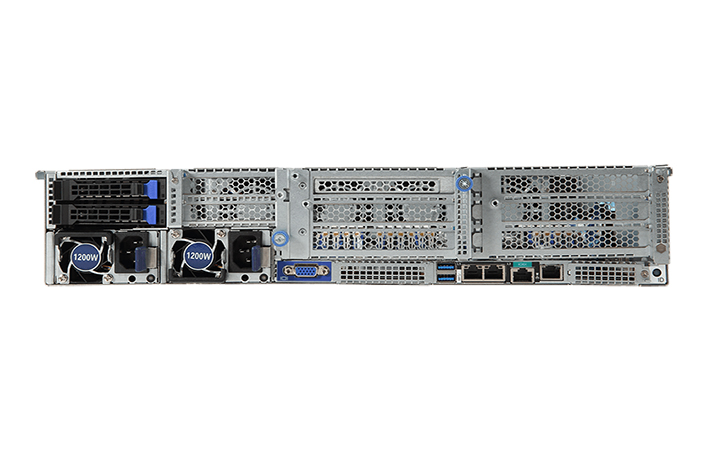 • 支持 8 个 PCI-E 插槽,以及 2 个专用 OCP 端口。